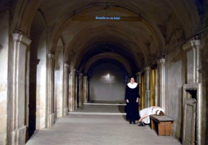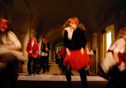 Neben dieser sprachlich erzeugten Einheit war es die aktive Beteiligung der Zuschauer am Drama, die die Grenze Darsteller und Zuschauer aufhob. Der Zuschauer wurde Akteur, indem er sich mitreißen ließ von den übermütigen Maskierten, die begleitet von temperamentvoller Tanzmusik durch die Atmosphäre ausstrahlende Gänge des alten Klosters, vorbei an den Schlafräumen der ehemaligen Internatsschüler hin in den nächsten "Bühnentraum", die Kirche, entführten. Der Bahre der "Scheintoten" in die Gruft folgte in einem Leichenzug wiederum das Publikum und wurde so Teil einer grenzübergreifenden Einheit von Zuschauern, Schauspielern und gemeinsamer Geschichte in diesem einst von Menschen beider Heimatländer genutzten Gebäude."